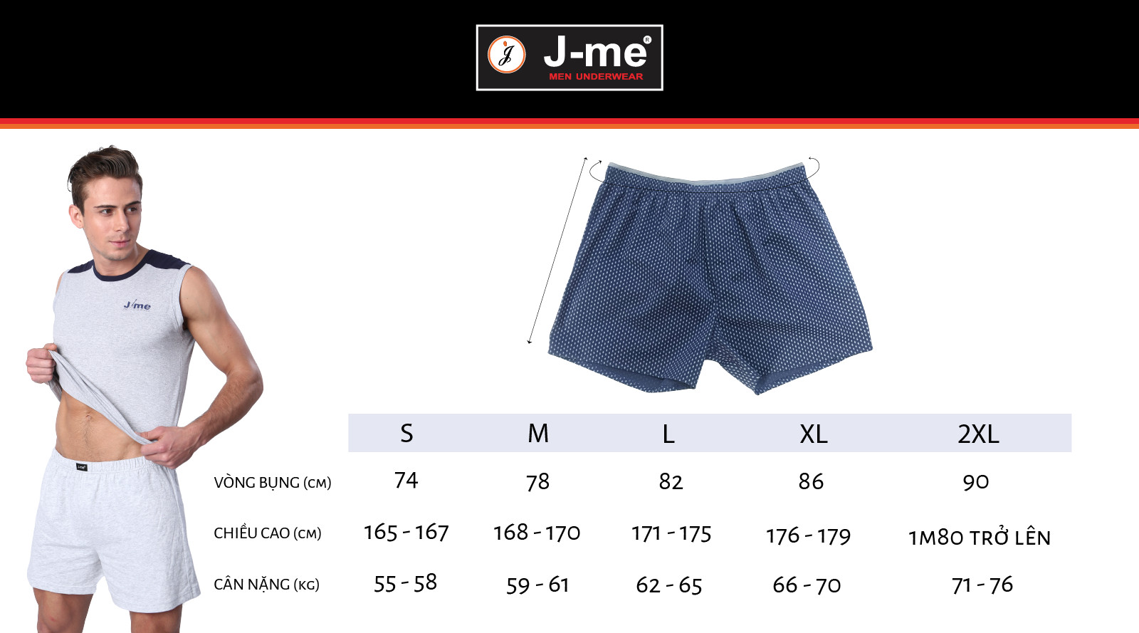 + Size 2XL: Phù Hợp ban nam vòng mông 86cm đến 90cm.